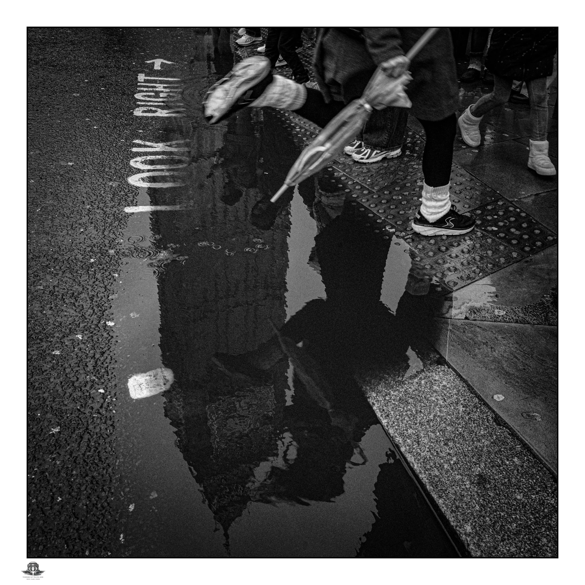 To capture this image I spent ten minutes crouched beside a shallow pool near Parliament. Tourists hurried past under umbrellas. I waited for the right movement, the right person and then when someone interesting crossed I pressed that shutter in the hope of telling a more compelling story. What do you think?